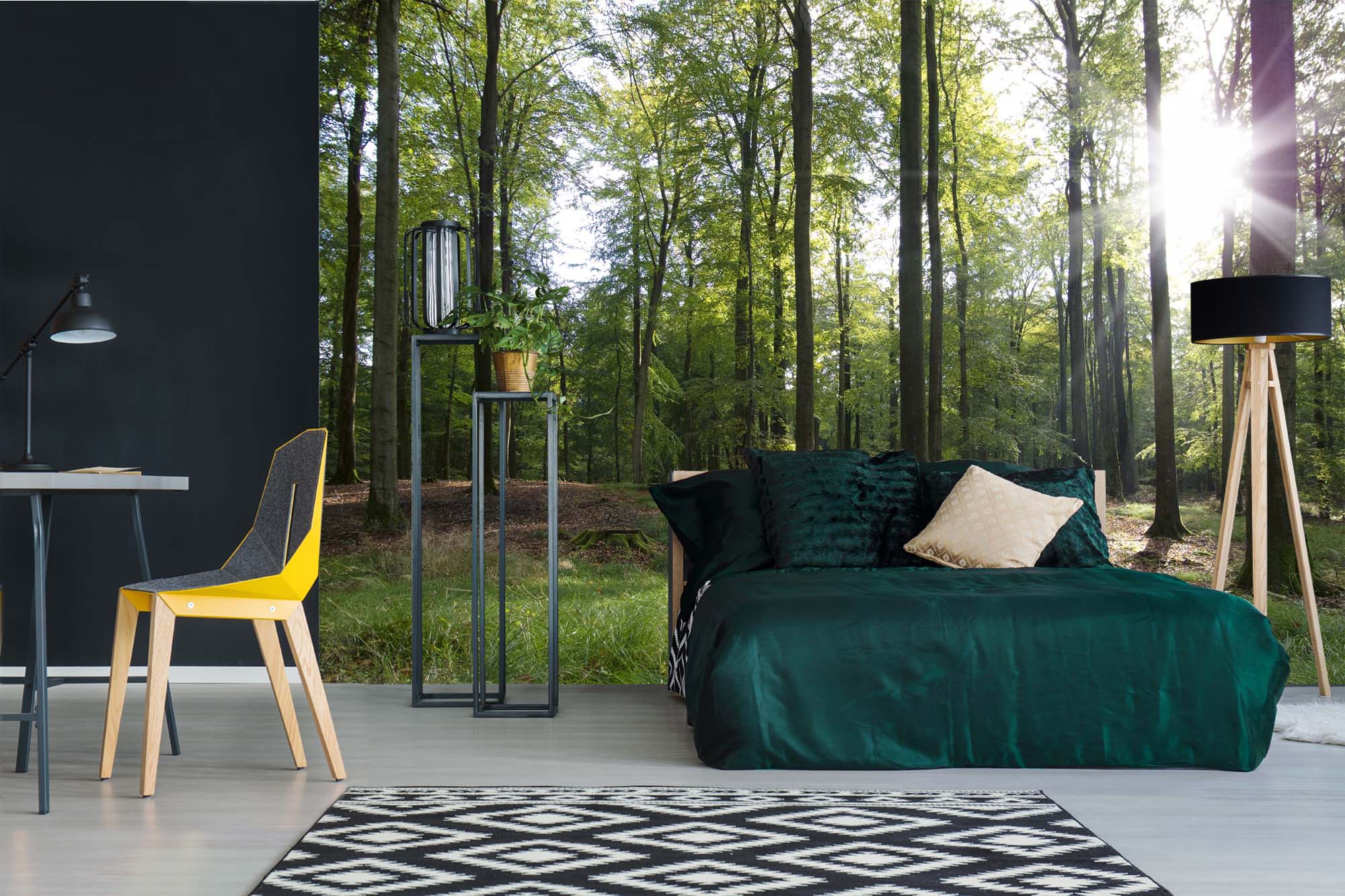 Fototapete MS-5-1866 mit Waldmotiv in einem modern eingerichteten Wohnraum