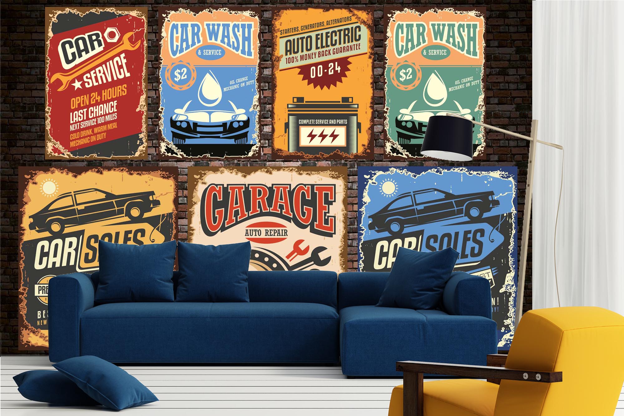 MS-5-2141 als Wandtapete in modernem Interieur; Retro-Design mit räumlicher Tiefe und Vintage-Charme