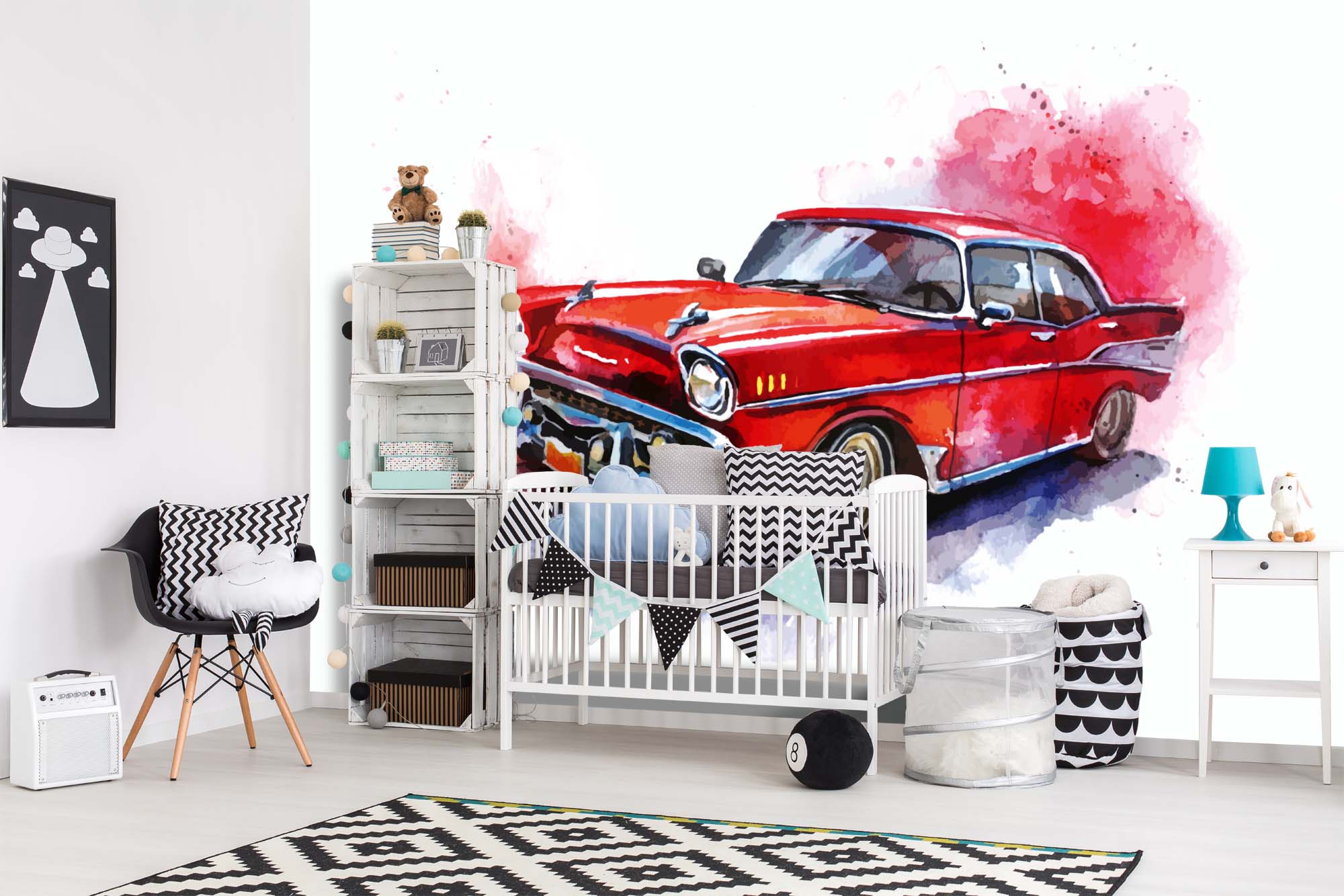 Diese hochwertige Fototapete aus Vlies überzeugt durch brillante Farben, einfache Verarbeitung und ein ausdrucksstarkes Retro-Motiv mit nostalgischem Flair und grafischer Tiefe. Dessin und Abmessung siehe Artikelbezeichnung.