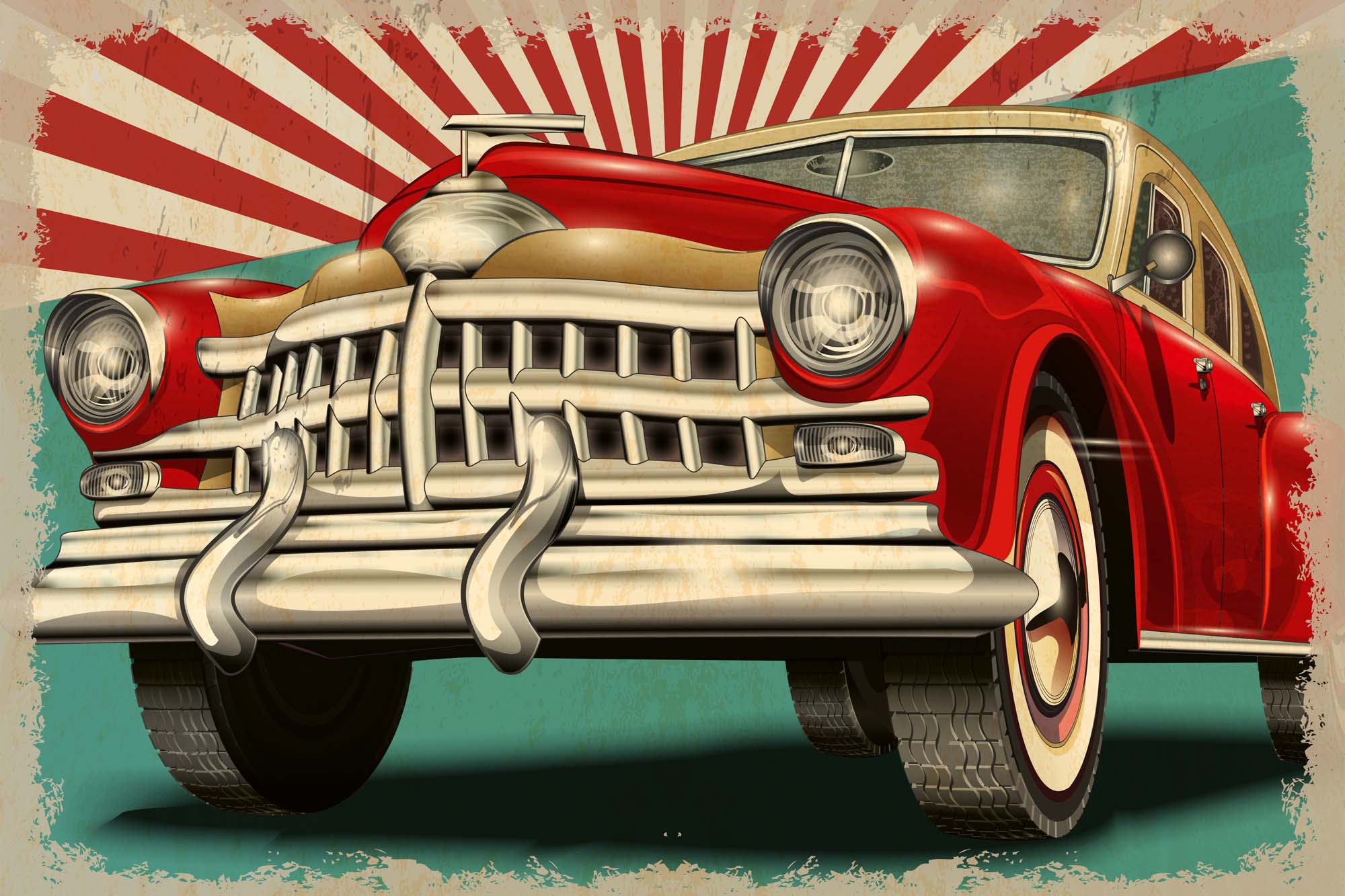 Diese hochwertige Fototapete aus Vlies überzeugt durch brillante Farben, einfache Verarbeitung und ein ausdrucksstarkes Retro-Motiv mit nostalgischem Flair und grafischer Tiefe. Dessin und Abmessung siehe Artikelbezeichnung.