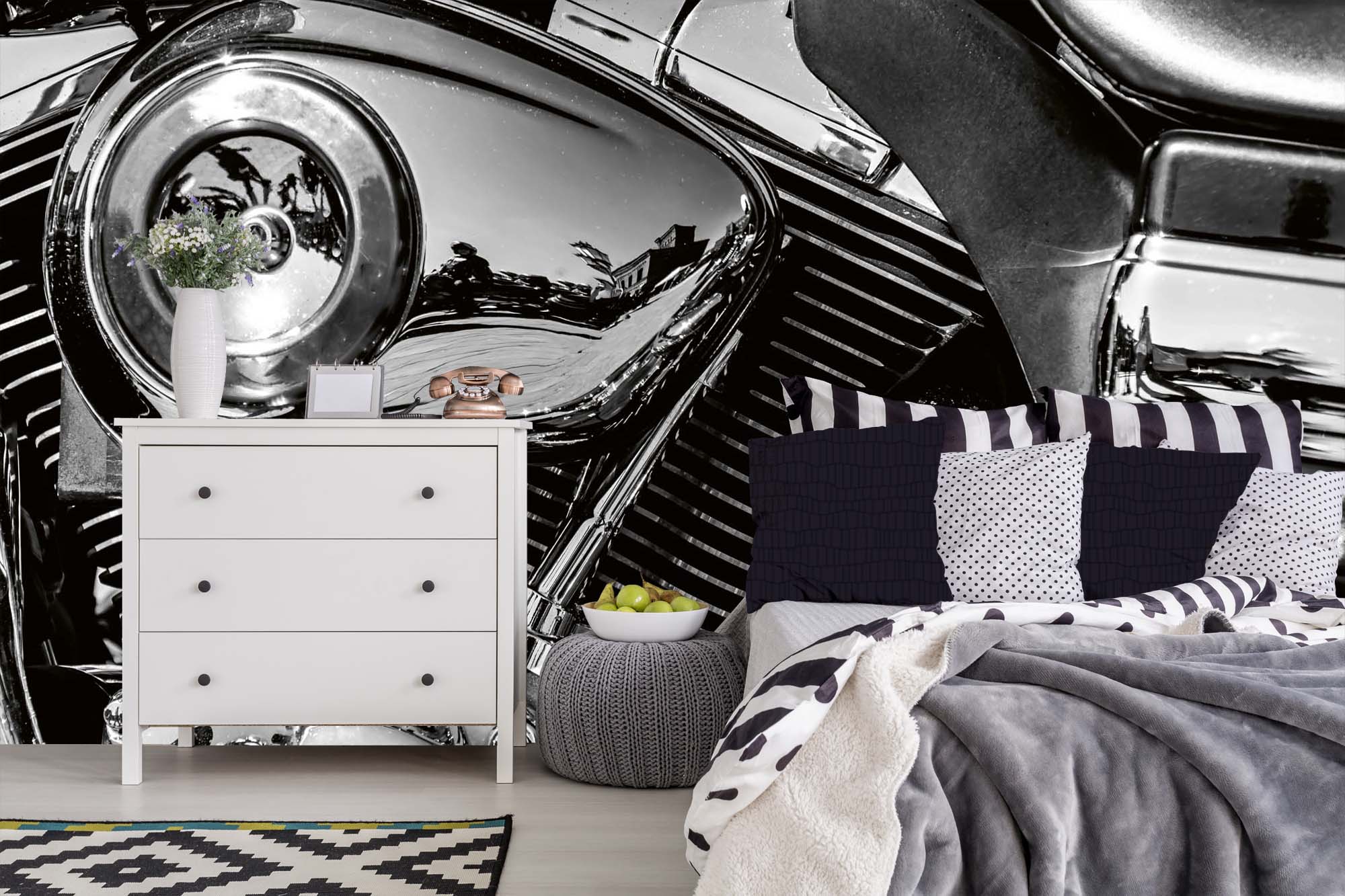 Diese hochwertige Fototapete aus Vlies überzeugt durch brillante Farben, einfache Verarbeitung und ein ausdrucksstarkes Retro-Motiv mit nostalgischem Flair und grafischer Tiefe. Dessin und Abmessung siehe Artikelbezeichnung.