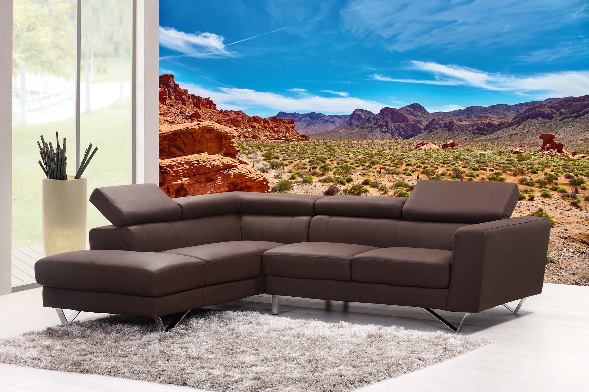 Preview: Berge-Fototapete MS-5-1666 in modernem Wohnraum – imposante Landschaft, räumliche Tiefe, stilvolle Wandgestaltung mit Naturakzen