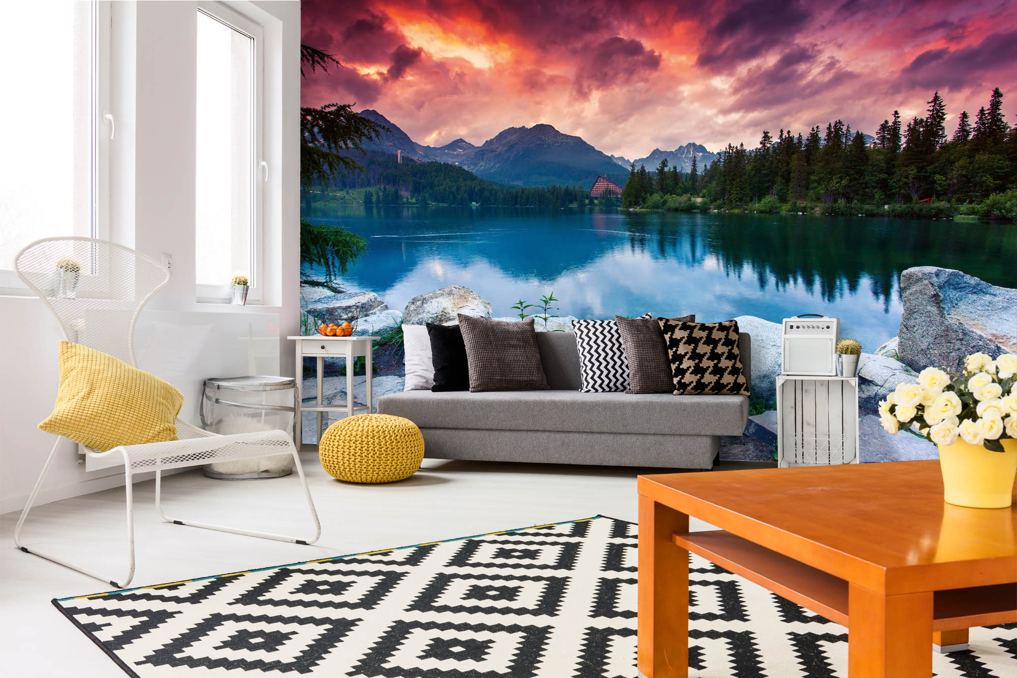 Diese hochwertige Fototapete aus Vlies überzeugt durch brillante Farben, einfache Verarbeitung und ein faszinierendes Bergpanorama mit räumlicher Tiefe und atmosphärischem Licht. Dessin und Abmessung siehe Artikelbezeichnung.