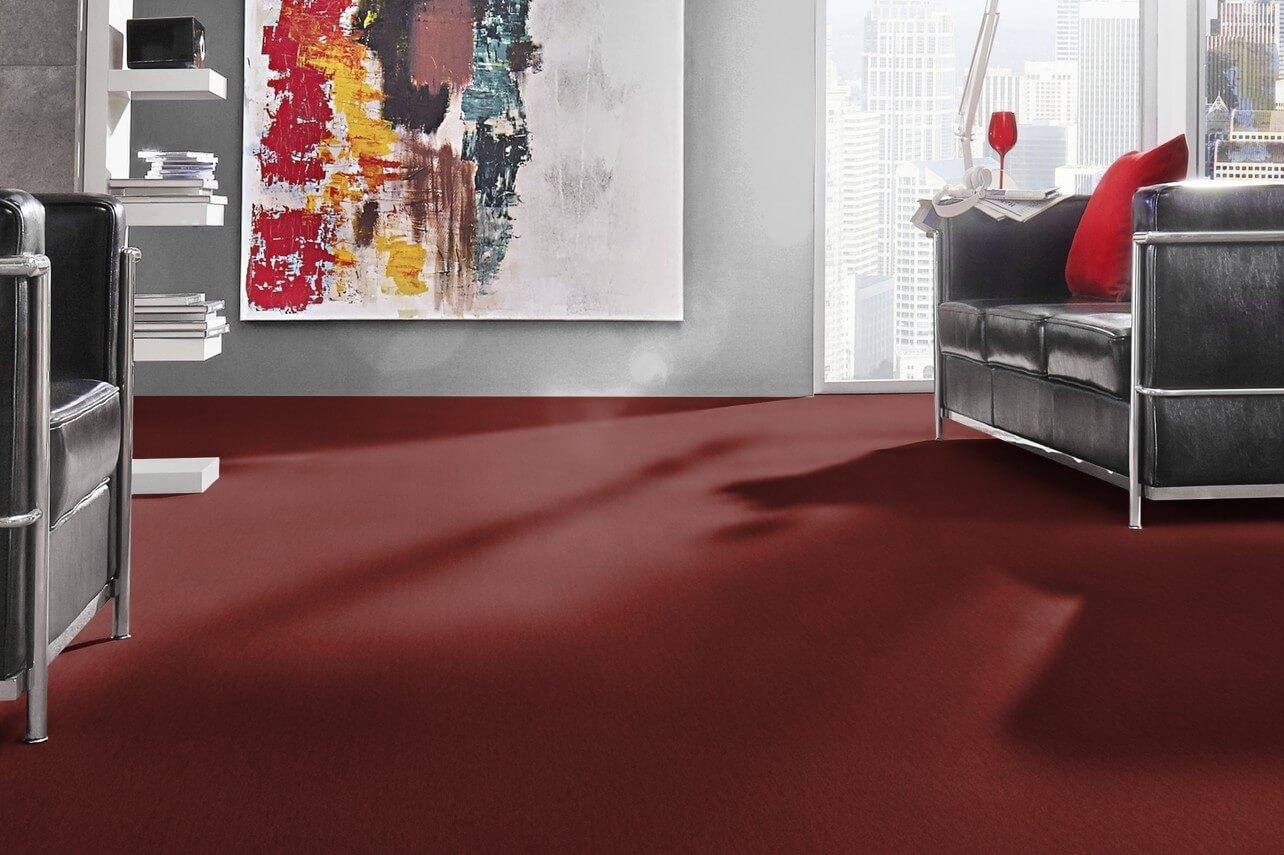 Nutria Melange 1P45 als Bodenbelag in modernem Wohnraum; hochwertiger Vorwerk-Velours mit wohnlicher Wirkung