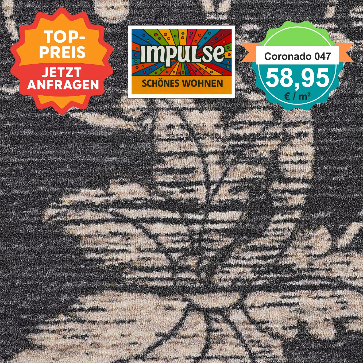 damit Sie sicher sein können, dass der Teppichboden perfekt zu Ihrem Zuhause passt, empfehlen wir Ihnen, ihn in einem Fachgeschäft vor Ort zu betrachten oder ein kostenloses Muster anzufordern. Bitte beachten Sie, dass Bildschirmdarstellungen vom Original deutlich abweichen können – ein Umtausch aus diesem Grund ist leider nicht möglich. Gerne senden wir Ihnen bis zu drei Muster kostenfrei zu, damit Sie in Ruhe vergleichen und entscheiden können