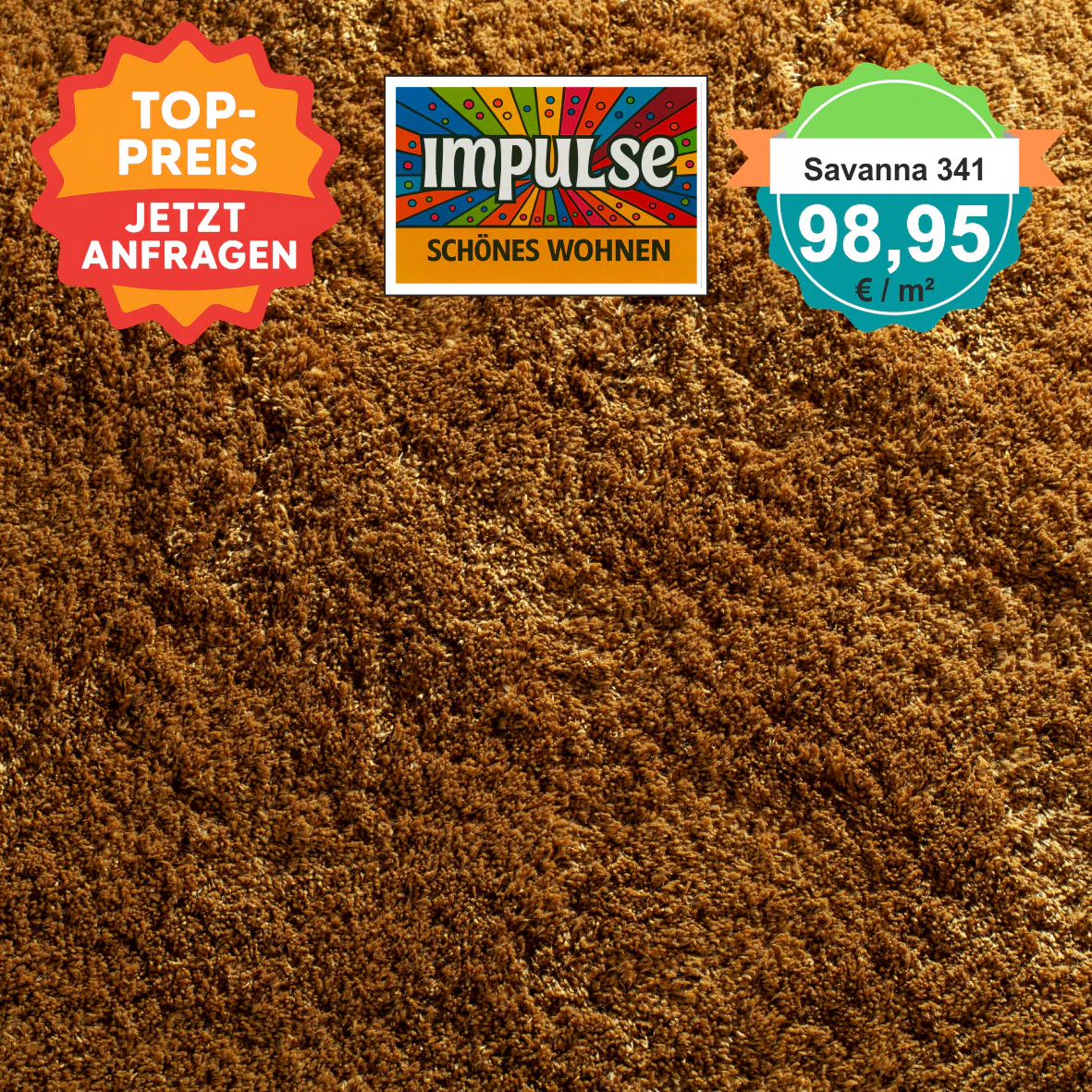 JAB Savanna 341 Gold – Draufsicht des Hochflor-Teppichbodens mit Preisangabe