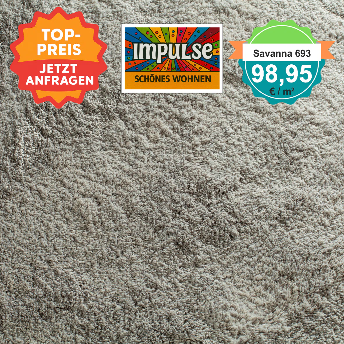 JAB Savanna 693 Grau – Draufsicht des Hochflor-Teppichbodens mit Preisangabe
