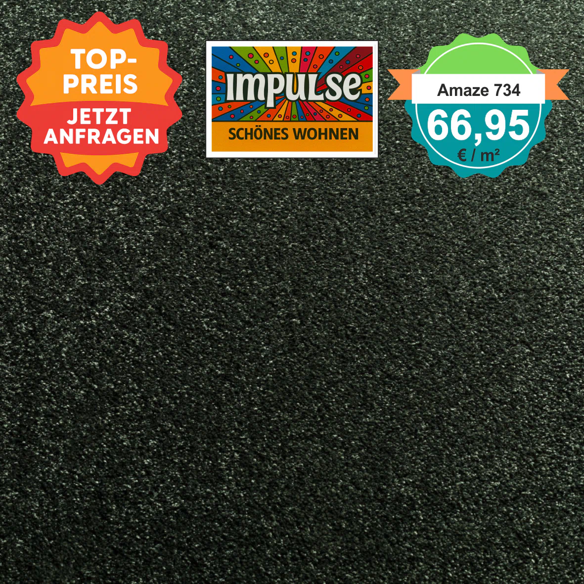 JAB Amaze 734 grün – quadratische Draufsicht Velours-Teppichboden in grün