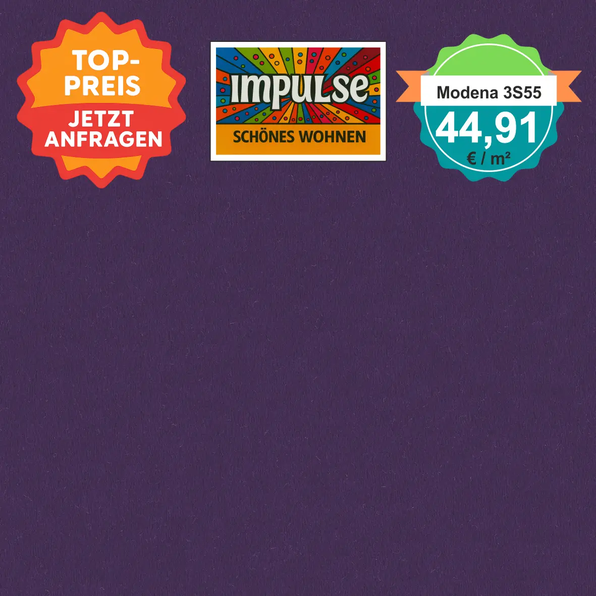 Modena 3S55 lila – rechteckige Draufsicht auf kräftig lilafarbenen Veloursboden als Meterware