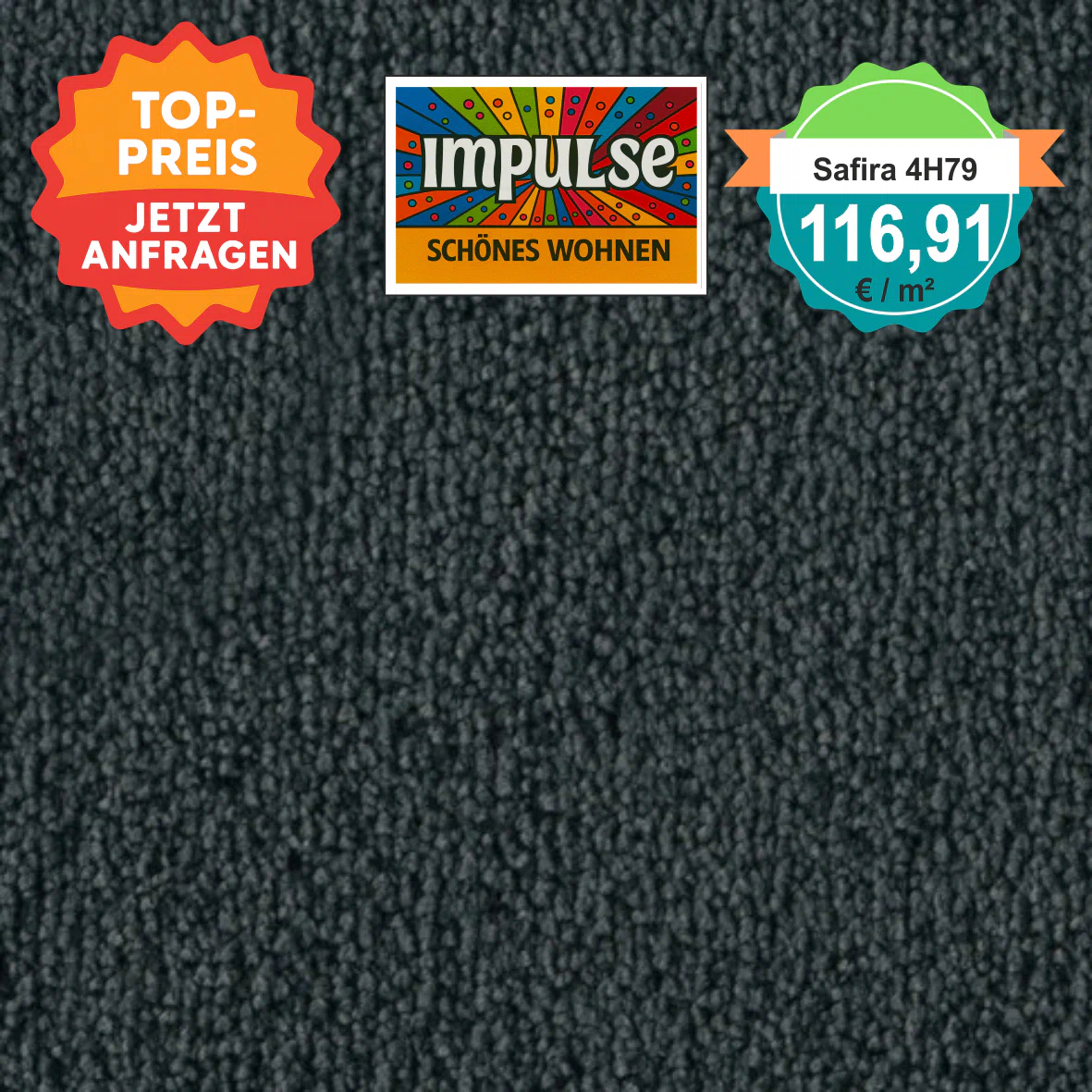 Vorwerk Safira Teppichboden Farbcode 4H79 – Draufsicht mit Preisetikett 116,91 €/m²