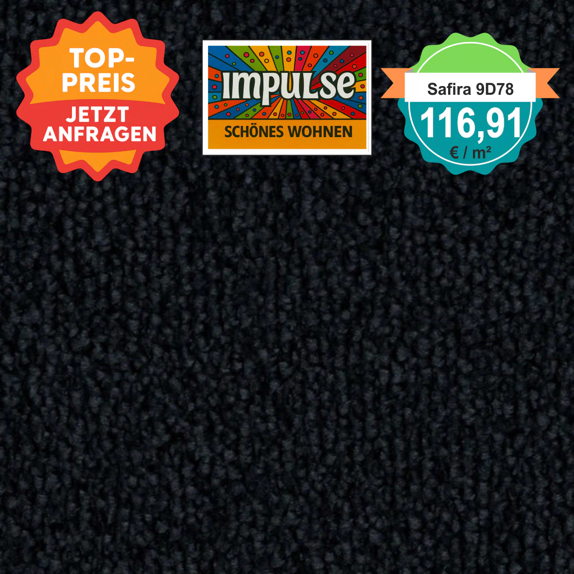 Vorwerk Safira Teppichboden Farbcode 9D78 – Draufsicht mit Preisetikett 116,91 €/m²
