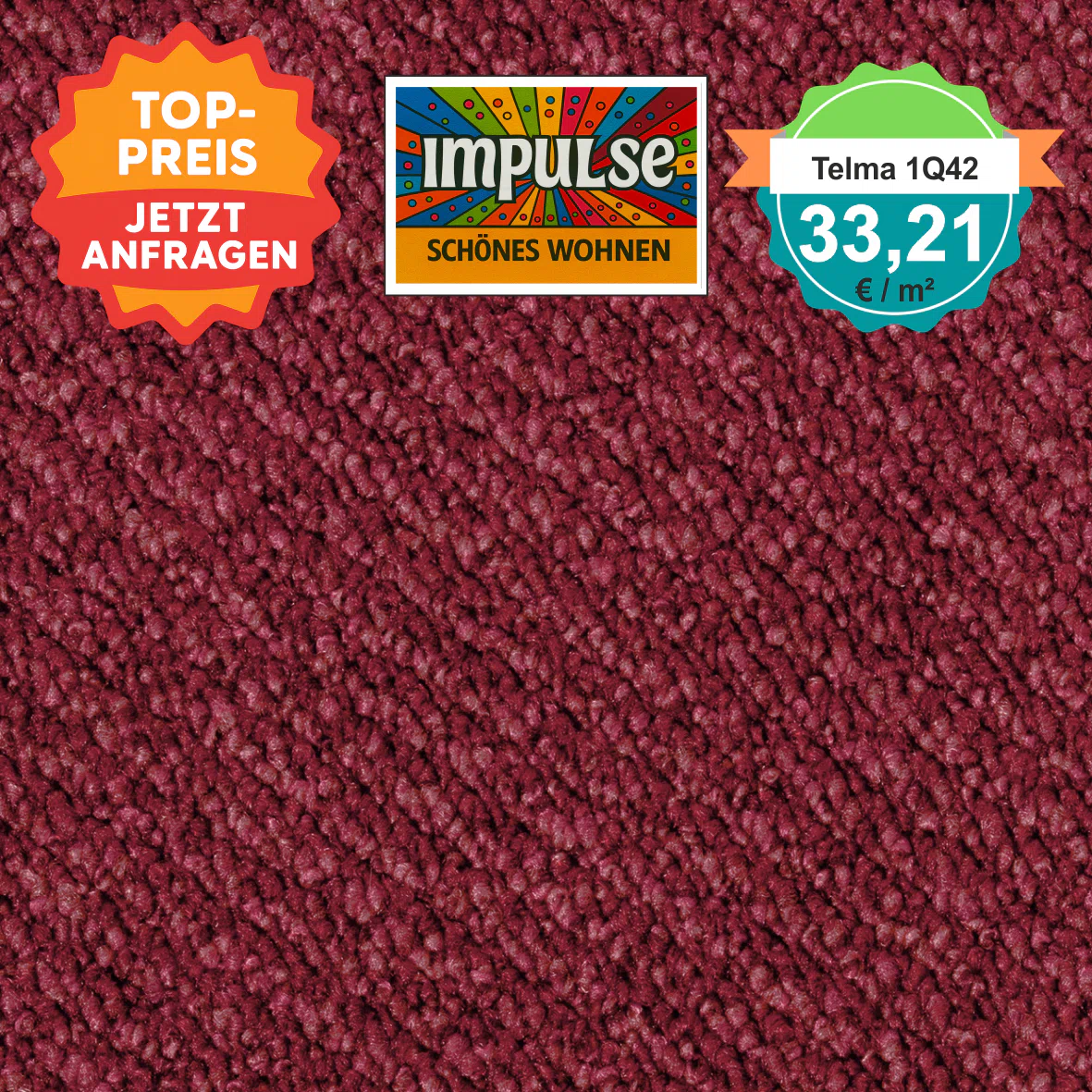 damit Sie sicher sein können, dass der Teppichboden perfekt zu Ihrem Zuhause passt, empfehlen wir Ihnen, ihn in einem Fachgeschäft vor Ort zu betrachten oder ein kostenloses Muster anzufordern. Bitte beachten Sie, dass Bildschirmdarstellungen vom Original deutlich abweichen können – ein Umtausch aus diesem Grund ist leider nicht möglich. Gerne senden wir Ihnen bis zu drei Muster kostenfrei zu, damit Sie in Ruhe vergleichen und entscheiden können