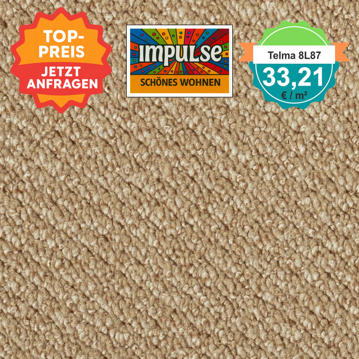 damit Sie sicher sein können, dass der Teppichboden perfekt zu Ihrem Zuhause passt, empfehlen wir Ihnen, ihn in einem Fachgeschäft vor Ort zu betrachten oder ein kostenloses Muster anzufordern. Bitte beachten Sie, dass Bildschirmdarstellungen vom Original deutlich abweichen können – ein Umtausch aus diesem Grund ist leider nicht möglich. Gerne senden wir Ihnen bis zu drei Muster kostenfrei zu, damit Sie in Ruhe vergleichen und entscheiden können