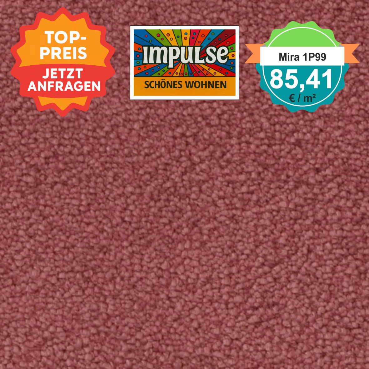 Draufsicht auf Vorwerk Mira 1P99 mit Preisetikett 85,41 €/m²