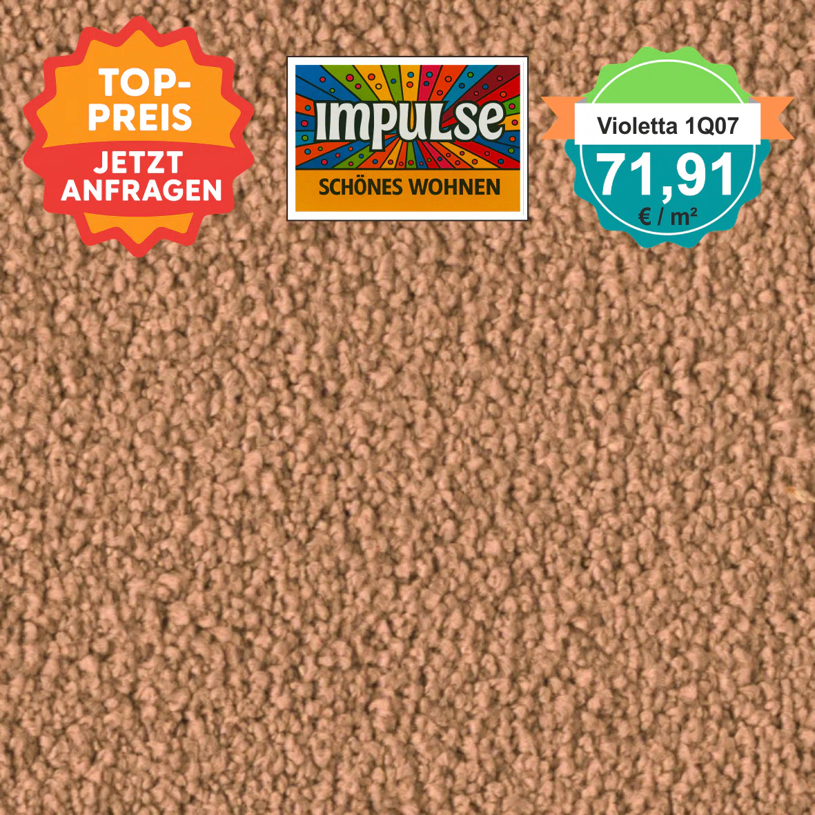 damit Sie sicher sein können, dass der Teppichboden perfekt zu Ihrem Zuhause passt, empfehlen wir Ihnen, ihn in einem Fachgeschäft vor Ort zu betrachten oder ein kostenloses Muster anzufordern. Bitte beachten Sie, dass Bildschirmdarstellungen vom Original deutlich abweichen können – ein Umtausch aus diesem Grund ist leider nicht möglich. Gerne senden wir Ihnen bis zu drei Muster kostenfrei zu, damit Sie in Ruhe vergleichen und entscheiden können
